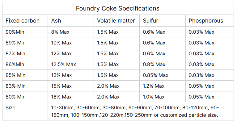 Billets, Steel anvan tout koreksyon Itilizasyon nan metaliji Coke FC 85% min